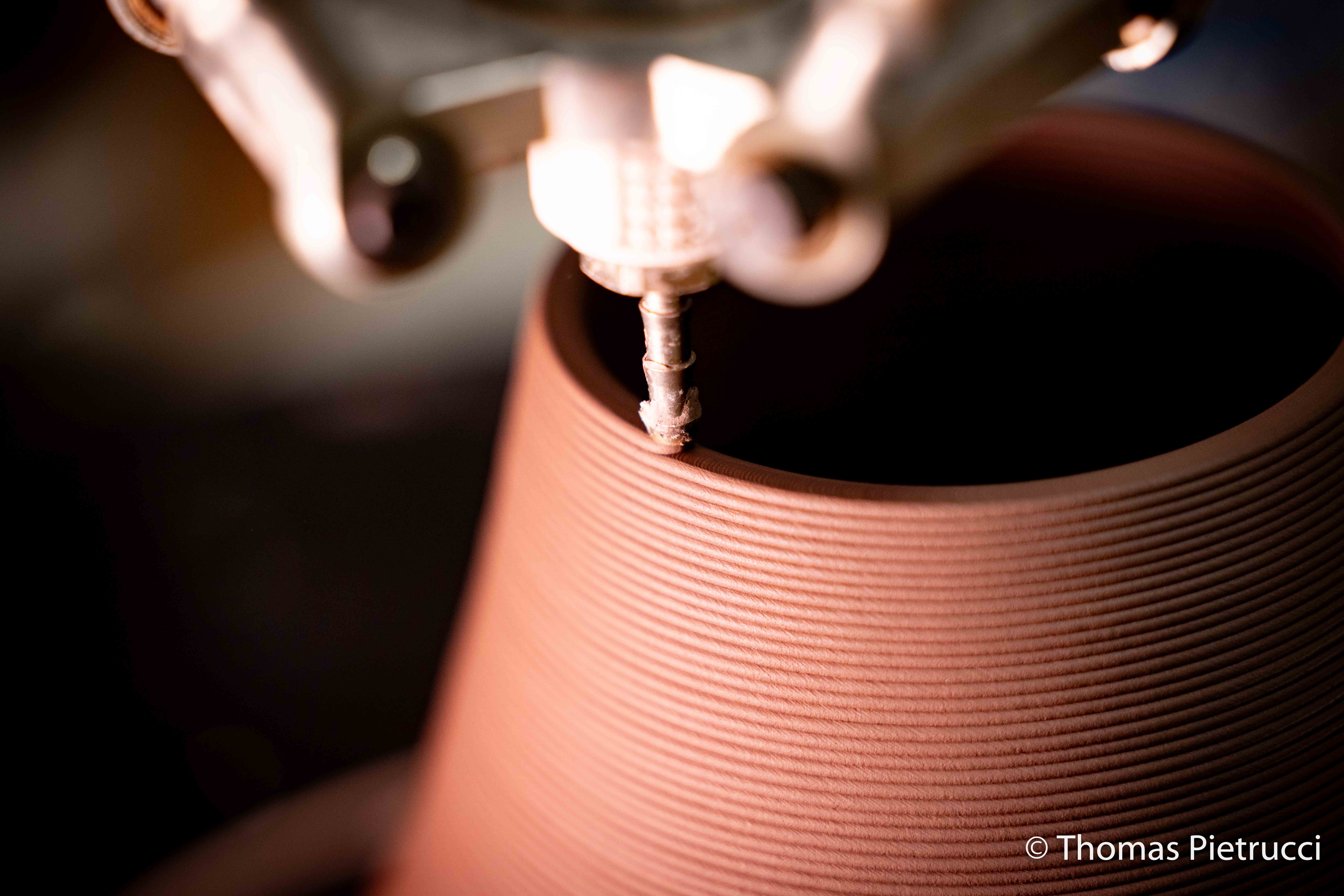Machine développée par Olivier Van Herpt qui se différencie par sa hauteur d’impression et par le fait de pouvoir utiliser la terre achetée dans le commerce sans transformation spécifique.